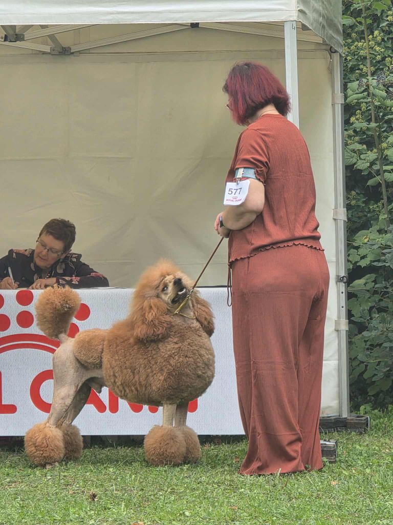 60 cm bonne proportion corps, jolie tête masculine, exc texture de poil, DCC, exc dos, port de queue et implantation, exc pied, annulation un peu juste à l'arrière Exc démarche